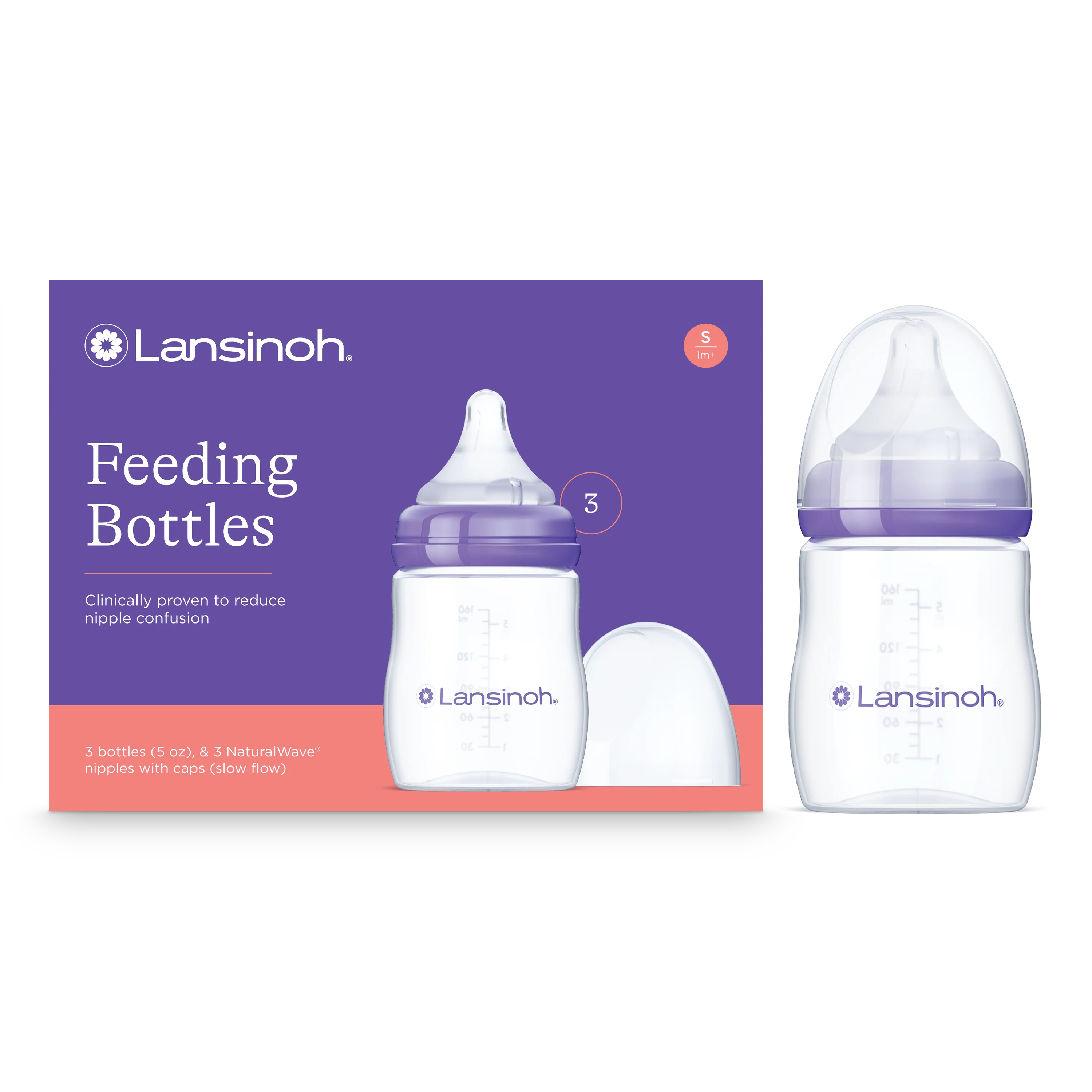 The Lansinoh® bottle has a wide neck for seamless transition between pumping, storing and feeding breastmilk. As part of the new Lansinoh® Pump-Store-Feed solution, moms can pump directly into one bottle, attach the collar with the NaturalWave® Nipple to feed right away, or seal the bottle with a cap to store breastmilk until needed.